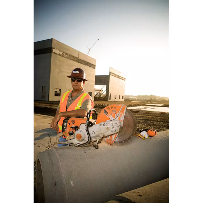 The TS 800 also features an ergonomic design and five-point advanced vibration control system built right into the handle, maximizing comfort so you can power through your day with less fatigue. When long, straight expansion joint cuts are needed, the optional cart, mounted water tank, guide wheel, and depth gauge wheel make it easy to help keep the cut straight. With a cutting depth of up to 5.6”, the TS 800 is a real pro performer whether in your hands or on the cart.