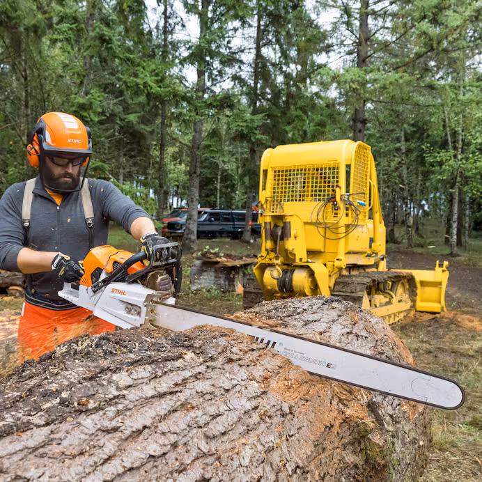 You aren't afraid to take on the largest, toughest, and most demanding jobs, and you need a powerful professional chainsaw you can rely on. For the toughest jobs, you can find the performance you need in the MS 881 MAGNUM® chainsaw. With reduced exhaust emission engine technology, an IntelliCarb™ compensating carburetor, and up to a 41-inch guide bar length, the MS 881 MAGNUM® is the largest, most powerful chainsaw in the STIHL lineup. Great fuel efficiency means you save both time and money. Another time-saving features is the stop switch, which automatically returns to the run position after the engine is stopped, reducing the chance of flooding the engine when starting. There is no substitute for the most powerful production chainsaw currently on the market—the STIHL MS 881 MAGNUM.