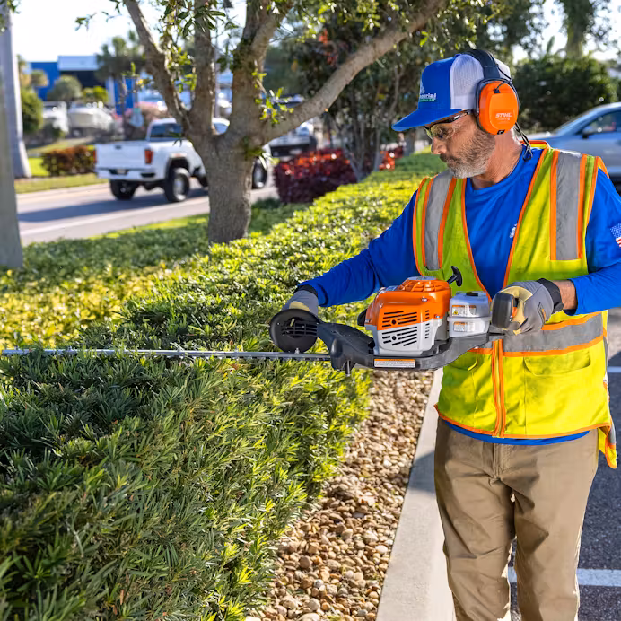 Precision and efficiency combine in the exceptional STIHL HS 87 T hedge trimmer. Available in 30" and 40" single-sided blade options, this trimmer operates at an increased speed for more efficient trimming of larger areas with greater precision than previous models. Its low exhaust emission engine uses 20% less fuel than previous models, reducing fuel costs and increasing efficiency. The hedge trimmer is also lightweight and includes low-vibration technology, so you experience less fatigue when you’re in the trimming zone.